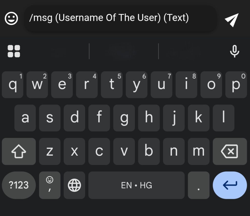 2- Type ( /msg ) and the exact username of your friend you want to send the text.