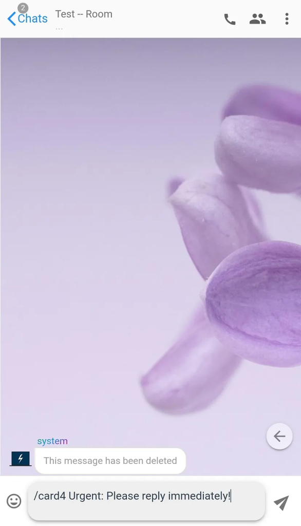 4 - /card4 or /orange <your message here>